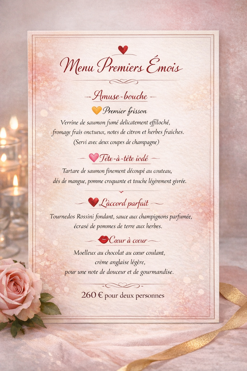dans le confort de votre maison, pour une Saint-Valentin intime, élégante et sans contraintes.