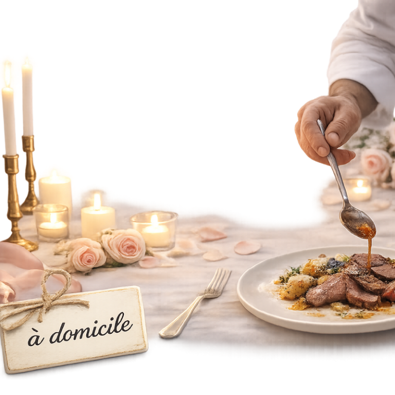 Que vous optiez pour un menu chef à domicile, préparé et réalisé chez vous, ou pour un menu traiteur, livré prêt à être dégusté, chaque proposition est pensée pour célébrer l’amour autour d’un dîner d’exception.